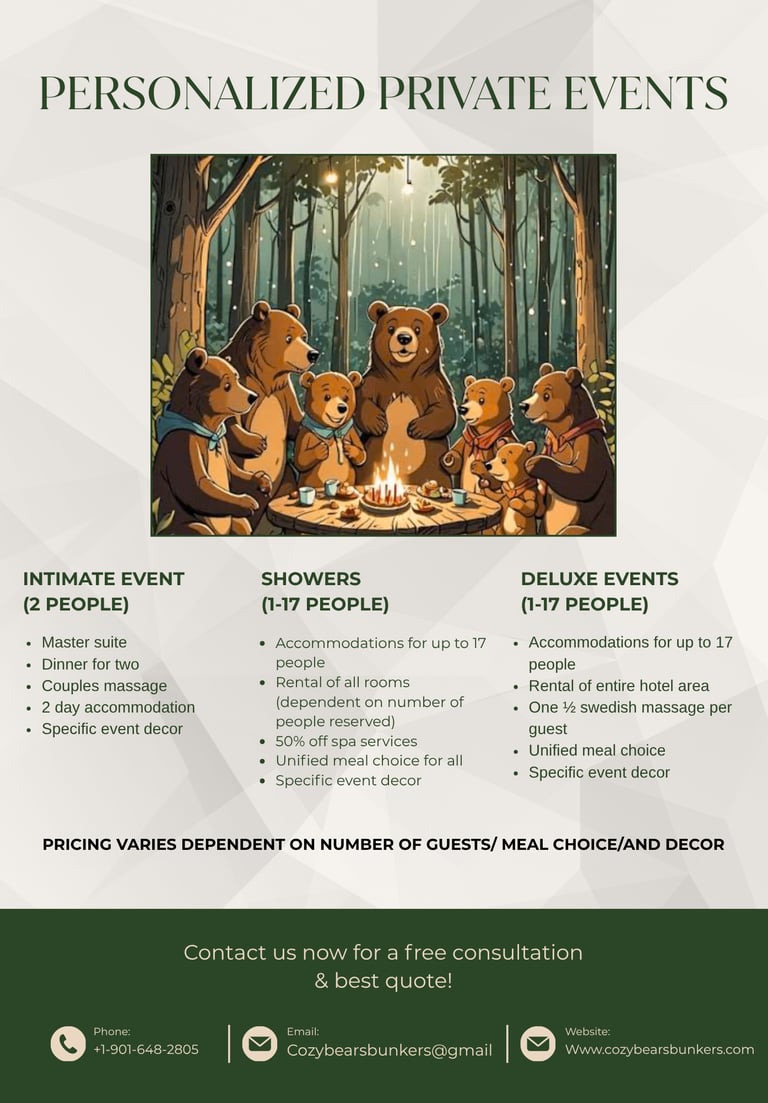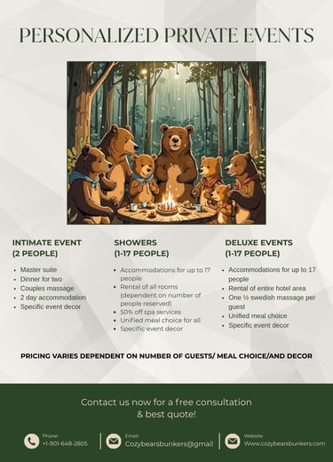 Accommodate up to 17 guests with our cozy room rentals for your special events.